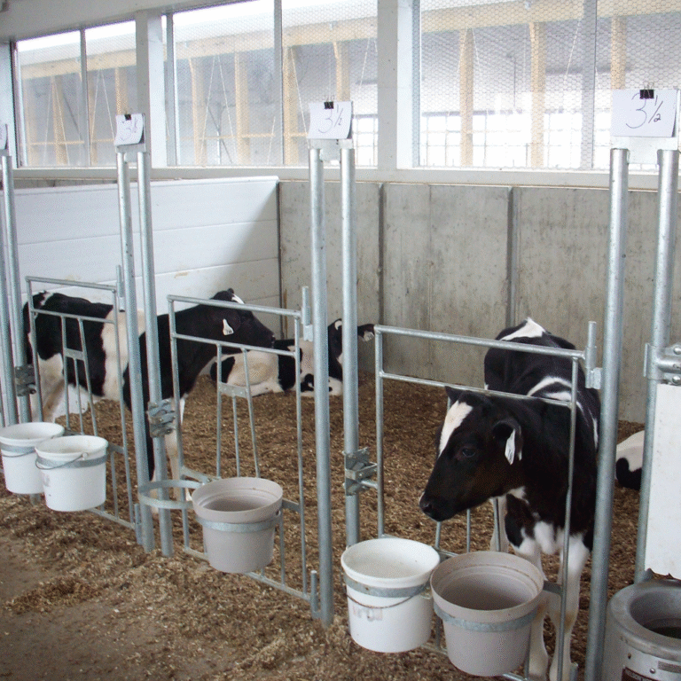Cet enclos Ă veaux en acier, conçu avec des poteaux ancrĂ©s et fixĂ©s dans une base en ciment, est parfait pour les Ă©tables oĂč les veaux sont installĂ©s en groupe. Il permet de retirer des panneaux pour agrandir lâenclos et faciliter lâintĂ©gration sociale des veaux. Facile Ă nettoyer grĂące Ă un accĂšs simple avec une chargeuse, cet enclos assure une transition en douceur vers des groupes plus grands.